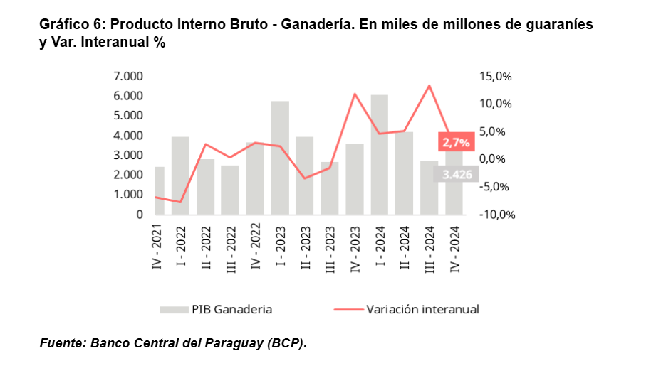 En el cuarto trimestre del año en curso el sector ganadero mostró un crecimiento interanual de 2,7%. De esta forma acumula un crecimiento de 6,39%.