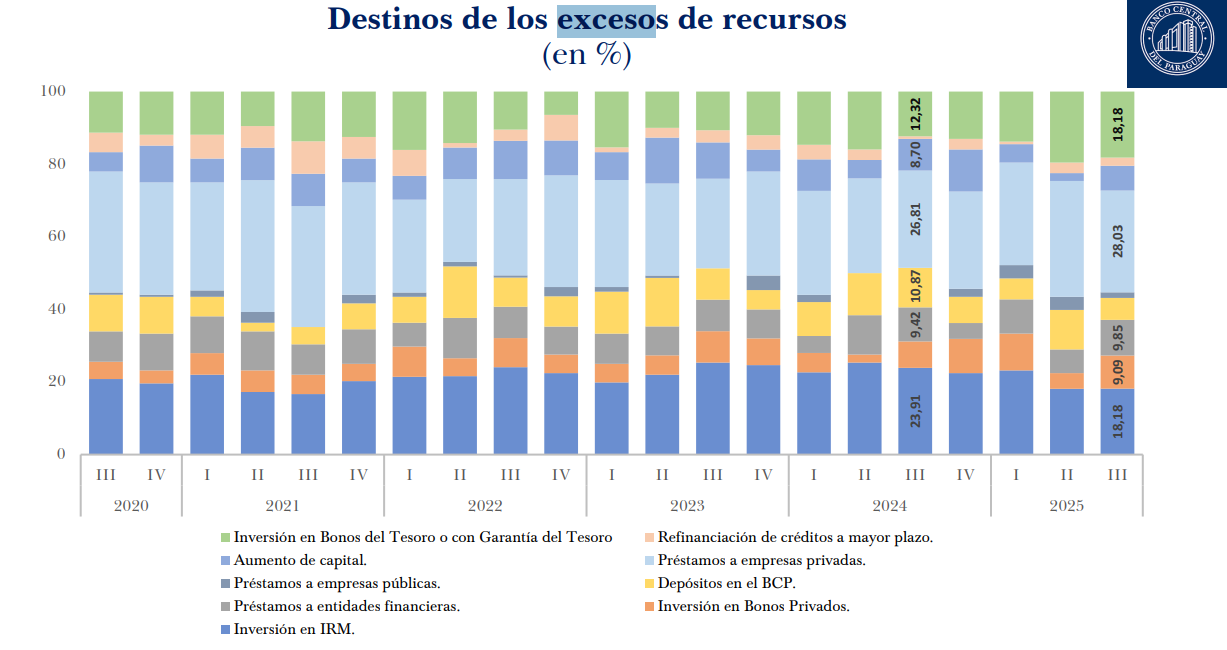 Según la Encuesta de Situación General del Crédito elaborada por el Banco Central del Paraguay (BCP), el sistema bancario local mantiene actualmente niveles elevados de liquidez, es decir, una disponibilidad de recursos superior a la demanda inmediata de crédito.